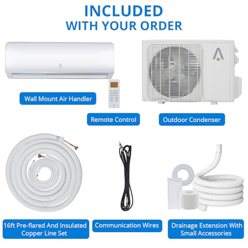 Experience year-round comfort with our 18,000 BTU ductless mini-split heat pump: 19 SEER2 inverter efficiency, whisper-quiet cooling/heating, easy 16.4 ft install kit and remote control for energy-smart living.