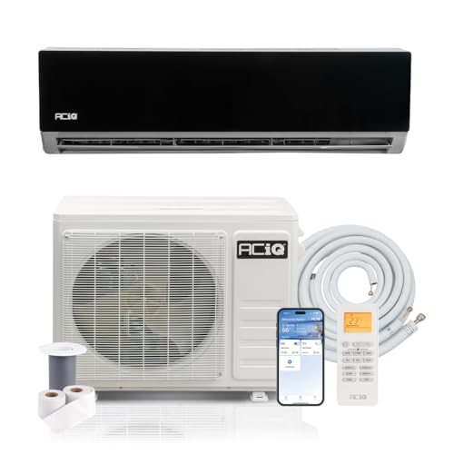 Stay cool or cozy year-round with the ACiQ Essentials 21 SEER2 24,000 BTU inverter mini-split. Sleek black 2-ton wall-mount heat pump, 16 ft kit, WiFi control, 208/230 V & eco-friendly R454B.