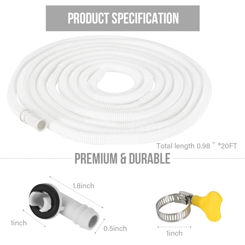 BEWAVE Air Conditioner Drain Hose Kit, Universal Durable Drain Pipe for Mini Split AC Ductless Heat Pump, Portable AC Washer Dishwasher, 20 FT