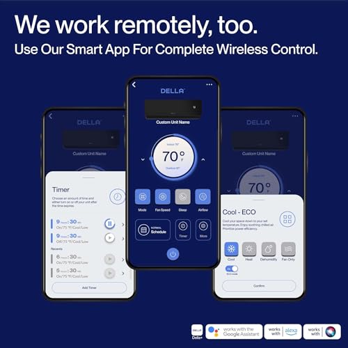 DELLA 12000 BTU Mini Split AC/Heat Pump | Alexa Smart, 20 SEER2, 550 Sq.Ft
