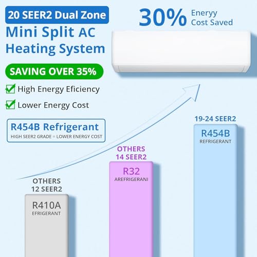 GarveeHome’s 35,000 BTU 4-Zone WiFi-enabled mini-split delivers precise heating & cooling with 19 SEER2 efficiency at 208–230 V. Pre-charged condenser & heat pump power four zones (9k + 9k + 12k + 12k BTU) for silent, customizable comfort.