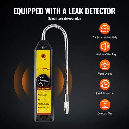 – Included Accessories: Manifold gauge, leak detector, 3 hoses, can tap