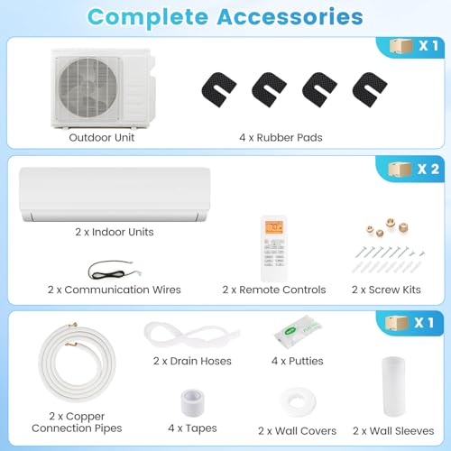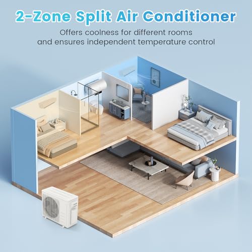 Let’s cut to the chase: this dual-zone mini split system is a game-changer. With a powerful 18000 BTU capacity split between two zones (12+12 BTU), it’s designed to provide comprehensive temperature control for spaces up to 800 square feet. The 20 SEER2 rating isn’t just a number – it’s a promise of exceptional energy efficiency that translates to lower electricity bills and reduced environmental impact.