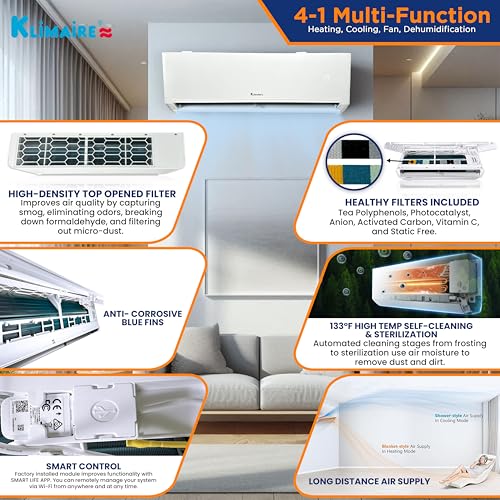 Stay cool and comfortable with the Klimaire 18,000 BTU Mini Split System. High-efficiency 22 SEER2 rating, inverter technology, and heat pump functionality provide powerful cooling and heating in a sleek, easy-to-install wall-mounted design.