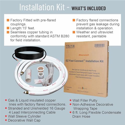 When you purchase the KLIMAIRE 24,000 BTU Mini Split System, you’re getting more than just the A/C unit. The package includes the Maxwell 16’ft Installation Kit and Wall Mounting Bracket 230V, providing everything you need for a seamless installation. This all-inclusive approach ensures that you won’t need to purchase additional components, saving you time and money.