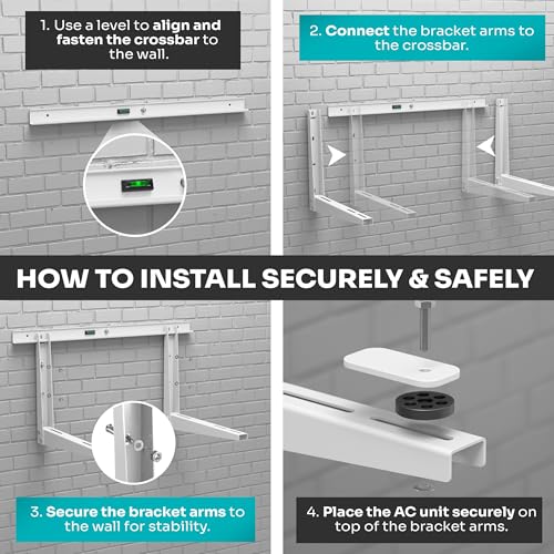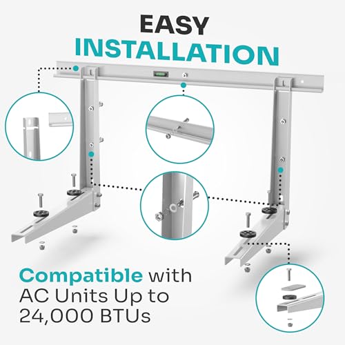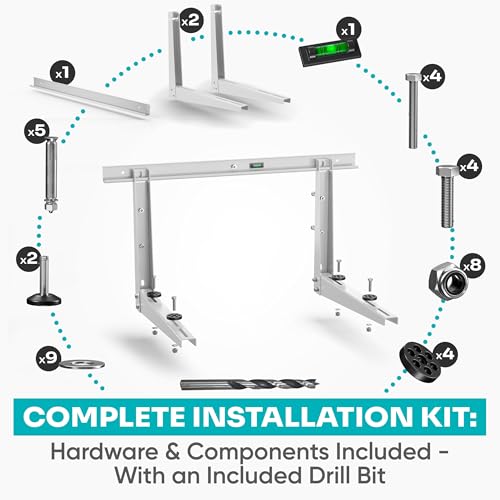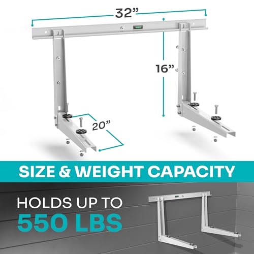 Fortify your mini split with this robust, weatherproof mounting bracket. Supports up to 550lbs, includes drill bit & anti-vibration pads. Perfect for 9000-24000 BTU units, ensuring stable, secure outdoor installation.
