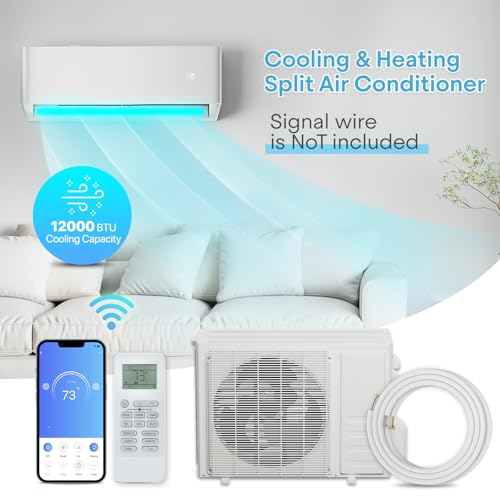 Athena Collection 12,000 BTU mini-split heat pump with WiFi control delivers ultra-quiet, energy-efficient heating & cooling. Wall-mounted unit includes 16 ft line and installation kit. (Signal wire not included.)