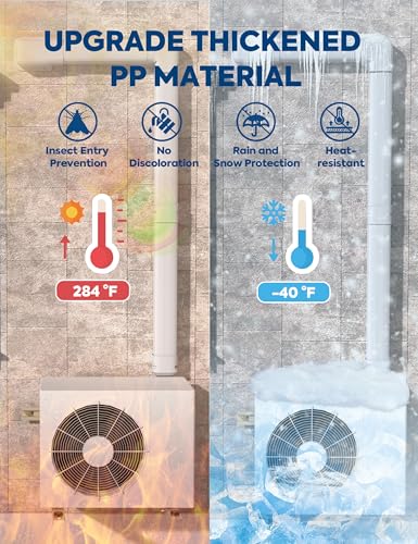 We timed ourselves during a backyard mini-split install and had the cover assembled around the refrigerant lines in under 20 minutes. The two interlocking halves snap securely, and the flexible interior duct slides easily over connections. No messy adhesives or drilling required—just slide, snap, and paint.