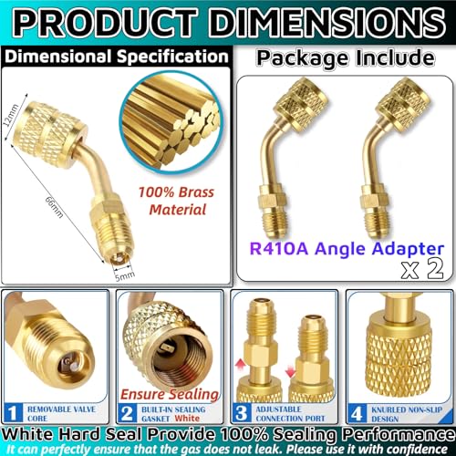 R410a Adapter Mini Split Adapter, 5/16 To 1/4 HVAC for Air Conditioner & Hose Connectors HVAC Tools for R410a Refrigerant Mini Split Recharging & More(2PCS 45°Angle)