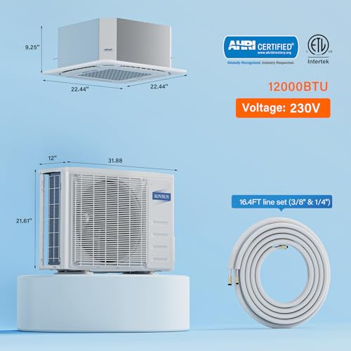 Enjoy year-round comfort with the ROVSUN 12000 BTU Ceiling Cassette Mini Split. Its inverter-driven 24 SEER2 heat pump cools & heats quietly, while smart WiFi/APP control, pre-charged condenser, and complete install kit make setup a breeze.