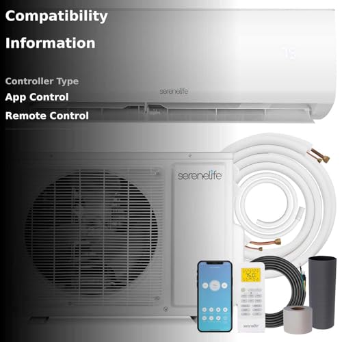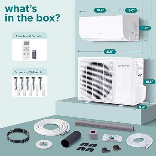 Effortlessly heat or cool up to 550 sq ft with the SereneLife 12,000 BTU mini split. Energy-efficient, whisper-quiet performance, WiFi smart control, sleek wall-mounted design, plus installation kit included.