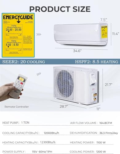 Stay comfortable year-round with SIMOE’s 12,000 BTU wall-mounted mini-split. Energy-efficient 20 SEER2 cooling and 1-ton inverter heat pump cools/heats up to 750 sq ft. Quiet, ductless, pre-charged for easy install.
