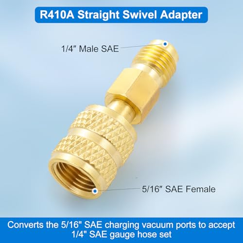 • 1/4″ x 5/16″ adapter lets you hook up to mini-split and wall-mounted heat pump fittings