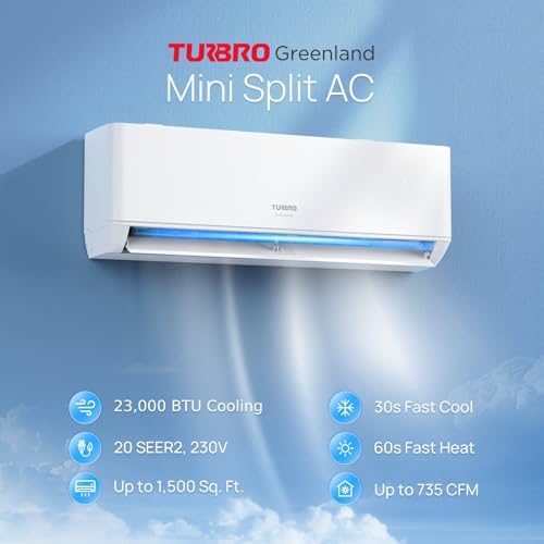 Experience year-round comfort with TURBRO Greenland Series 24,000 BTU Ductless Mini Split Inverter AC & Heat Pump. Boasting 20 SEER2 efficiency, WiFi control and Energy Star performance, it quietly cools and heats up to 1,500 sq. ft.