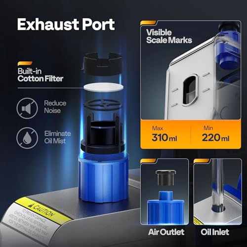 • Built-In Oil Reservoir: The integrated, transparent oil bottle lets you monitor fluid levels and quality without disassembly.