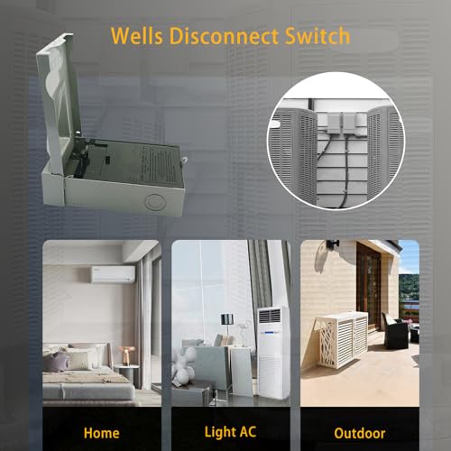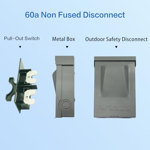 Wells 60 Amp Disconnect 120/240VAC Non-Fuse AC Disconnect Box Outdoor Waterproof Breathable Metal Box Pull Out Switch for Home and Light Commercial Air Conditioning, Near Condensing Unit